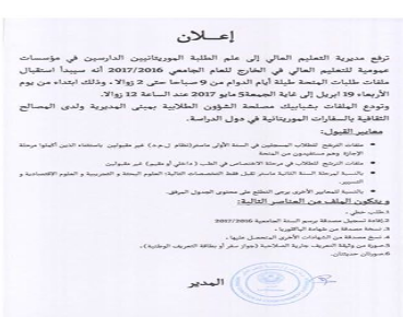 وفي هذا الإطار نعلن ـ وبلغة حازمة وجازمة ـ للرأي العام الطلابي والوطني ما يلي: