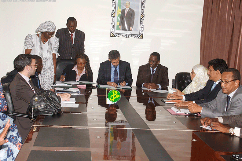 وقع وزير الشؤون الاقتصادية والتنمية السيد سيدي ولد التاه اليوم الاربعاء في مقر الوزارة مع السيدة فيرا سينغوا مديرة العمليات لموريتانيا في البنك الدولي على اتفاقية تمويل موجهة لدعم جهود موريتانيا في مجال التكوين المهني.