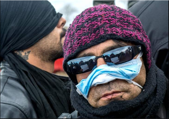 وافاد مصورون لفرانس برس ان المحتجين ساروا لمسافة قصيرة في ممر في المخيم وبدت شفاههم مخاطة جزئيا.